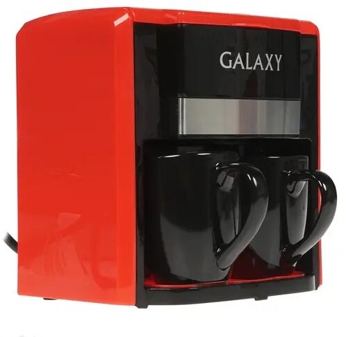 Кофеварка электрическая GALAXY LINE GL 0708, красная, капельная, 750 Вт, 0,3 л (2 чашки), многоразовый съемный фильтр, выключатель с индикатором работы, ножки, препятствующие скольжению, 2 керамические чашки в комплекте, мерная ложка