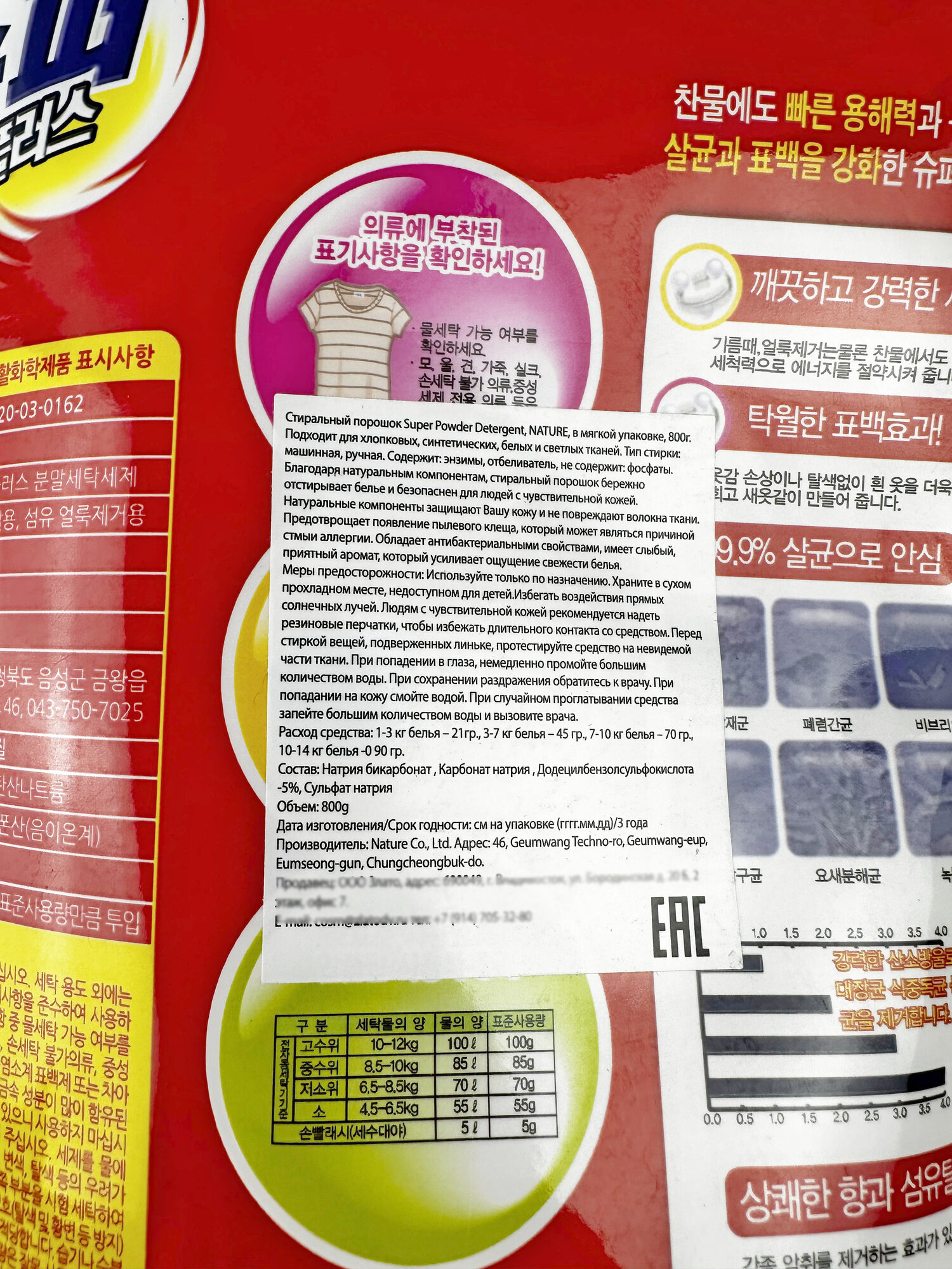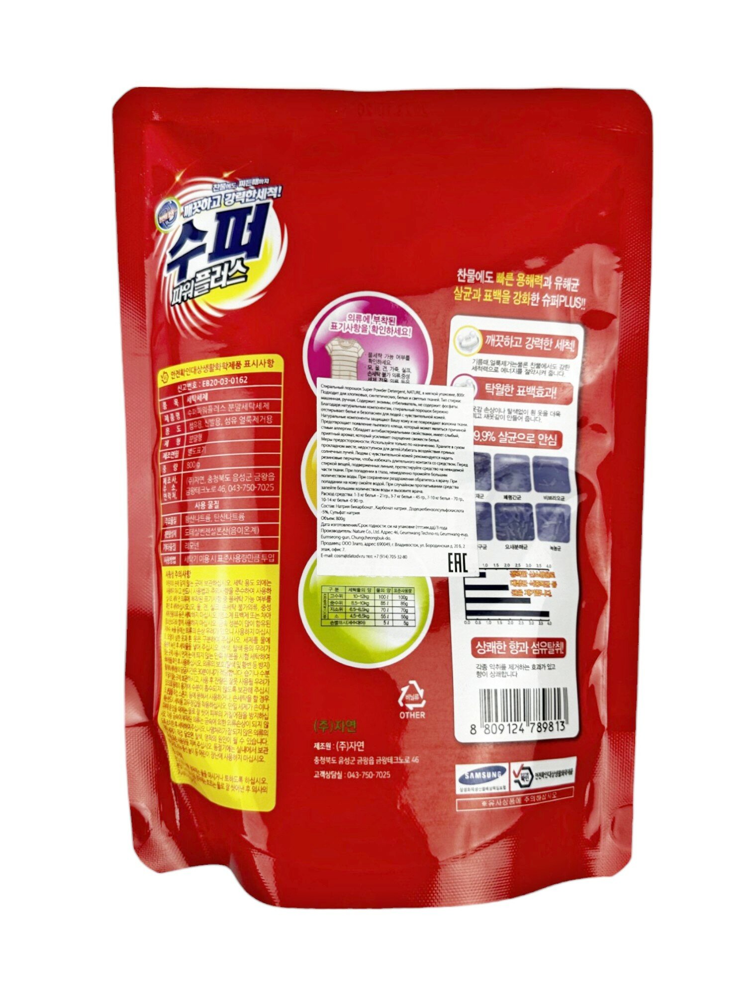 Стиральный порошок Nature Super Power plus для светлого белья, мягкая упаковка, 800г информация: