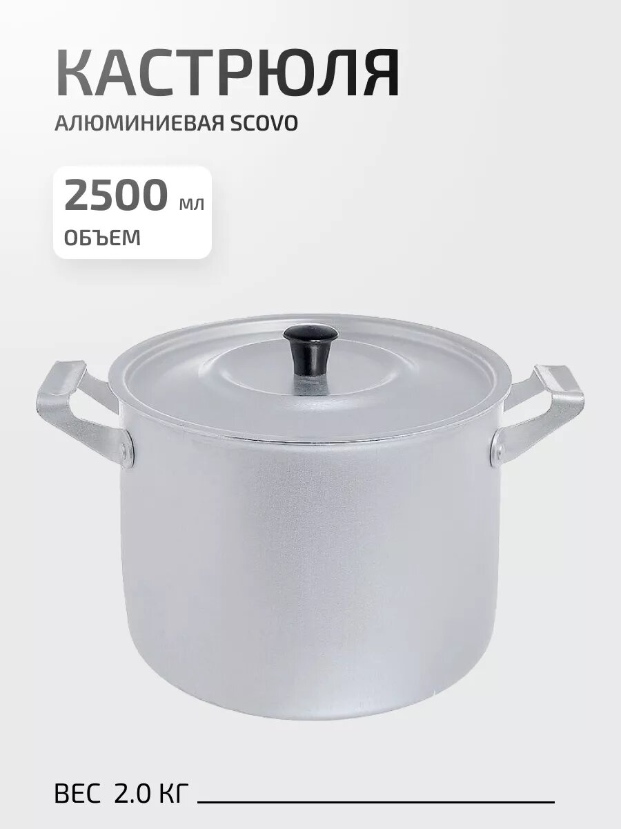 Кастрюля алюминиевая матовая 2.5Л SCOVO