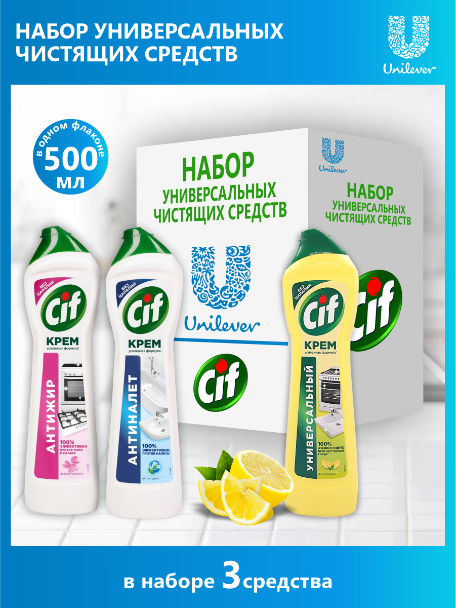 10 цен на Набор CIF Чистящее средство Крем Актив лимон 500 мл.+Крем Актив Фреш 500 мл.+Розовая свежесть 500 мл