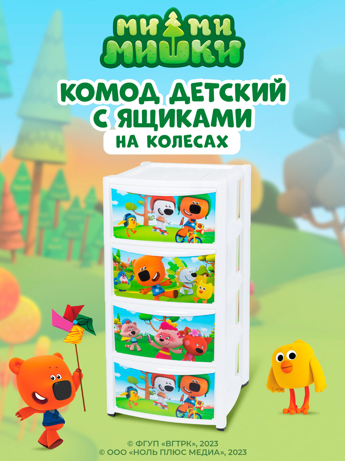 Пластишка Комод детский на колесах 4 ящика, цвет бежевый, рисунки микс 5 580 ₽