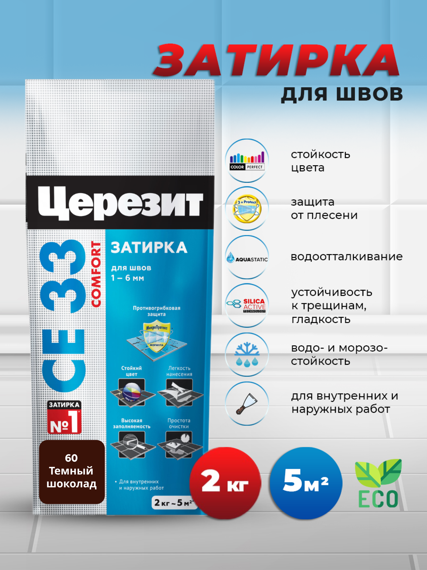 Затирка для плитки Церезит CE 33 №60, темный шоколад, 2 кг информация: