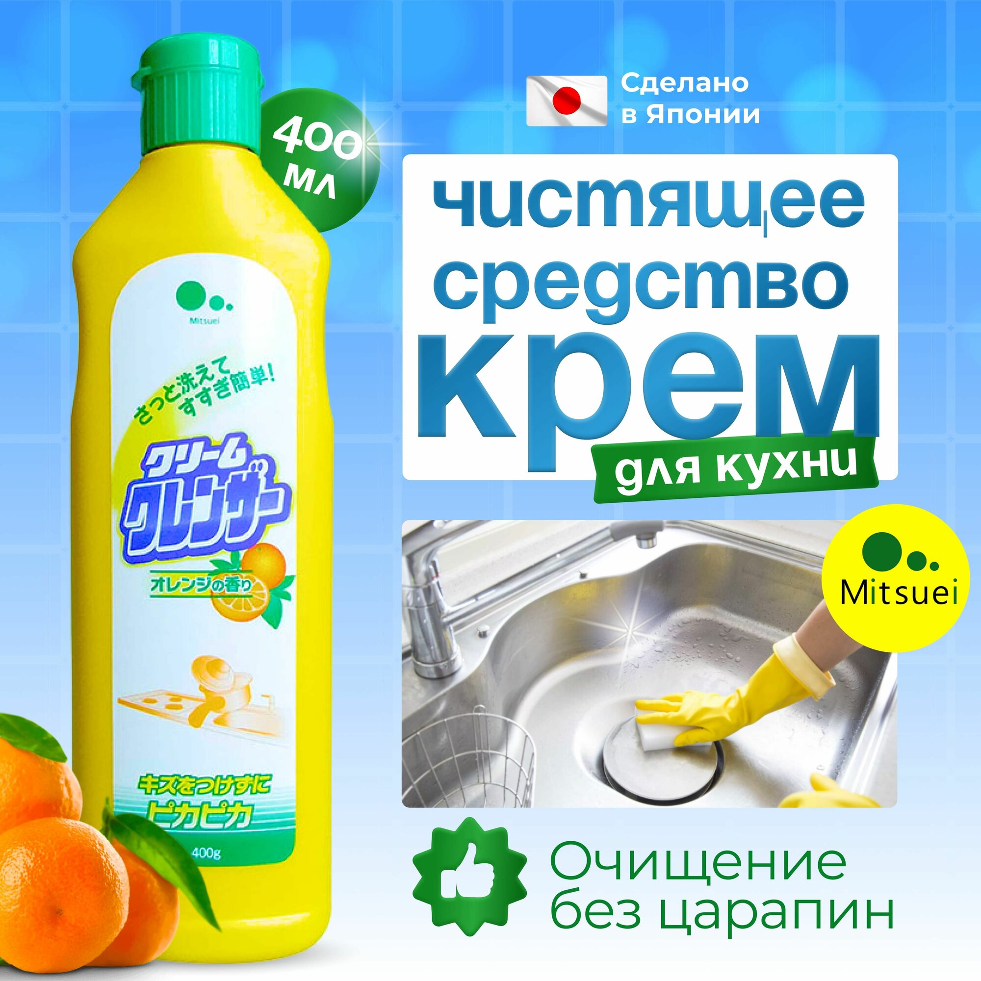 Чистящее средство крем для кухни MITSUEI Япония 400 мл, моющий универсальный без царапин для раковин, газовой плиты от накипи, ржавчины информация: