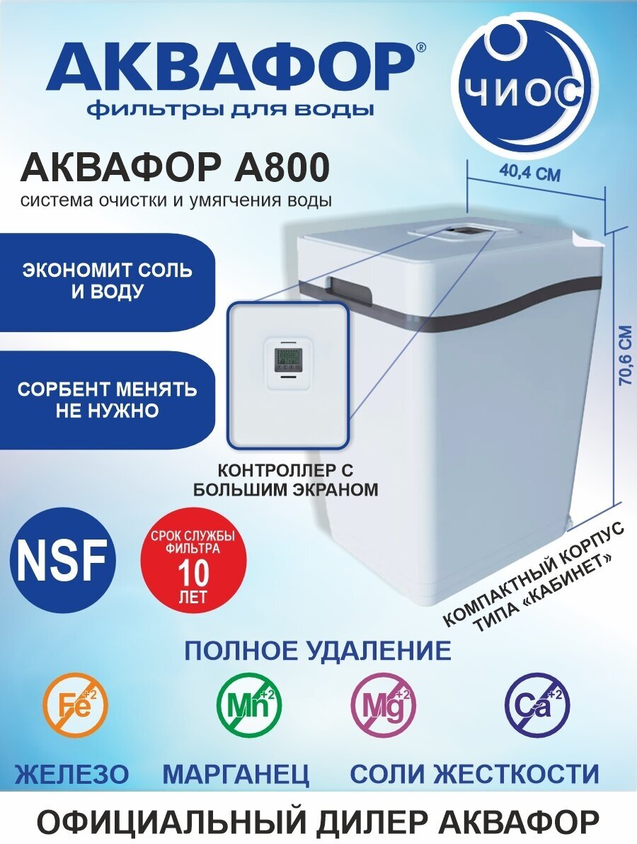 AQUAPHOR A800, Умягчение воды, удаление высоких концентраций железа и марганца, кабинетный фильтр с загрузкой