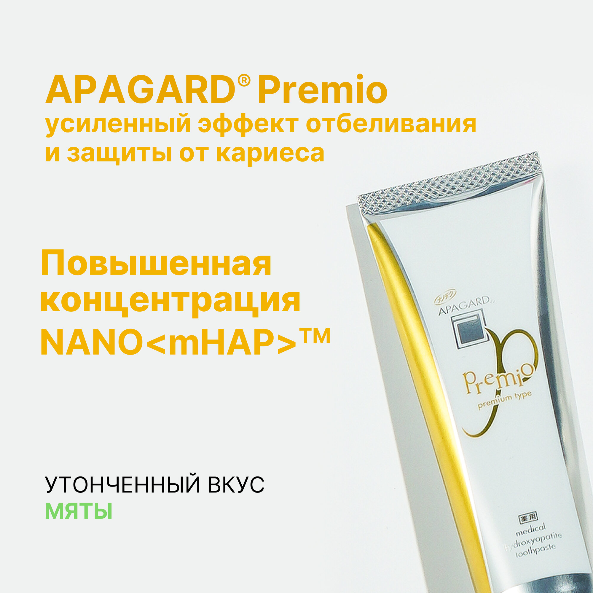 Apagard premiо зубная паста профилактическая отбеливающая, с повышенным содержанием медицинского нано-гидроксиапатита и специальным отбеливающим составом, 100 гр