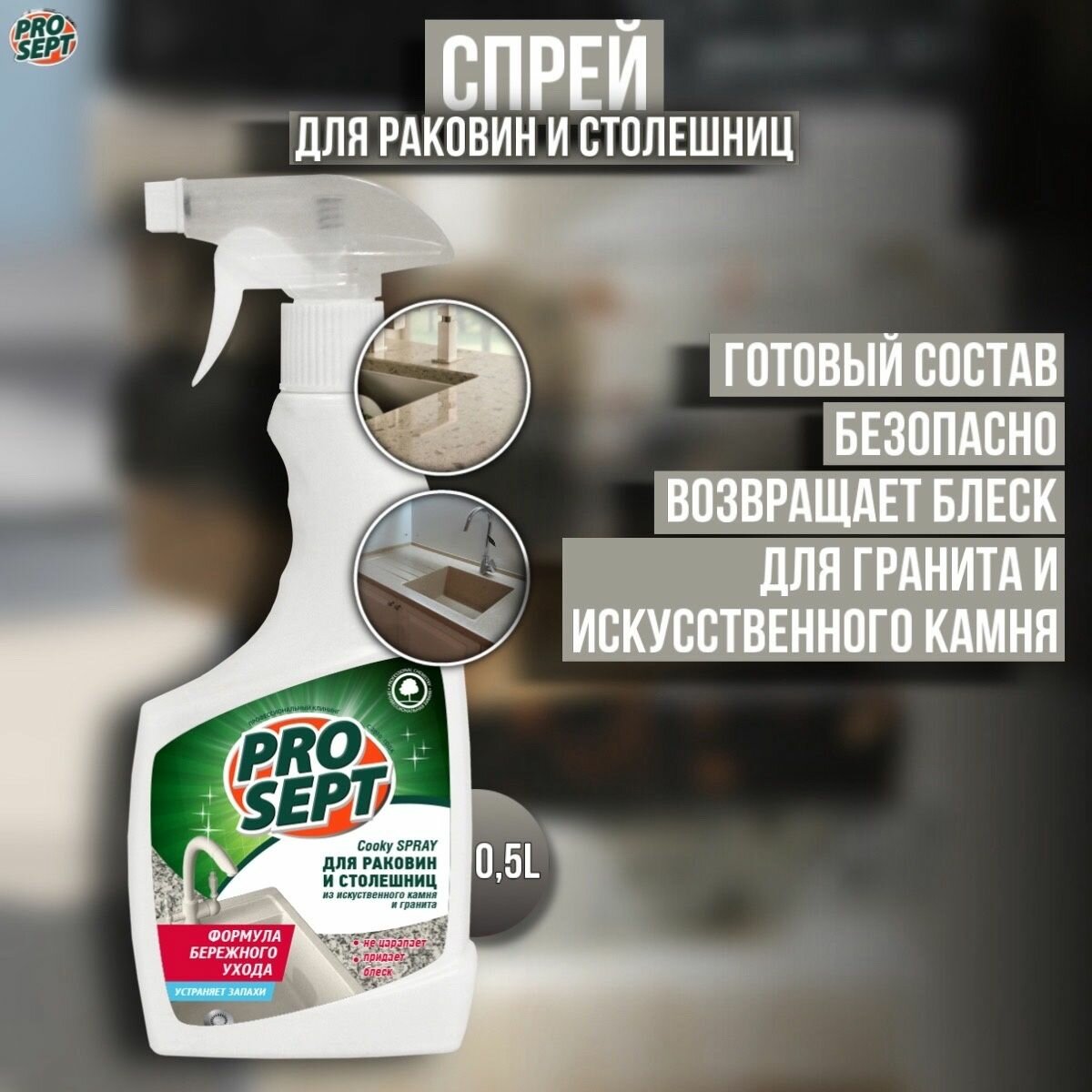 Чистящий спрей Prosept COOKY Spray для столешниц и раковин из искусственного камня и гранита, 500 мл