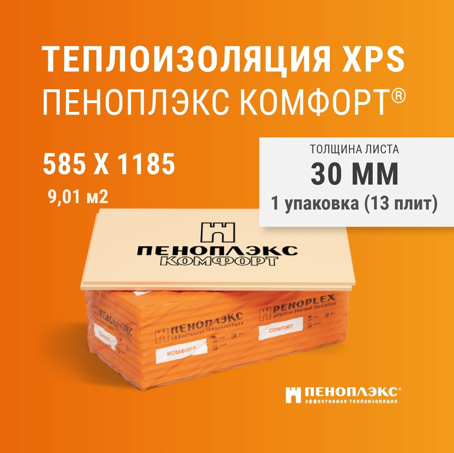 Пеноплэкс Комфорт 118.5х58.5см 30мм 13 листов (8,97 м2) универсальный утеплитель из экструдированного пенополистирола (XPS)