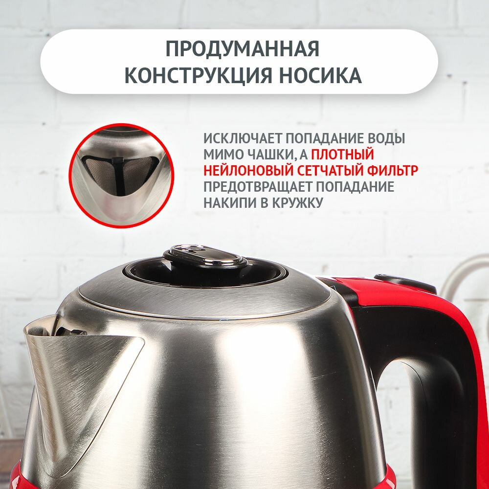 Чайник электрический 1,8 л LEBEN, 1800 Вт, металл, тройные стенки, бесшовная колба 2 838 ₽