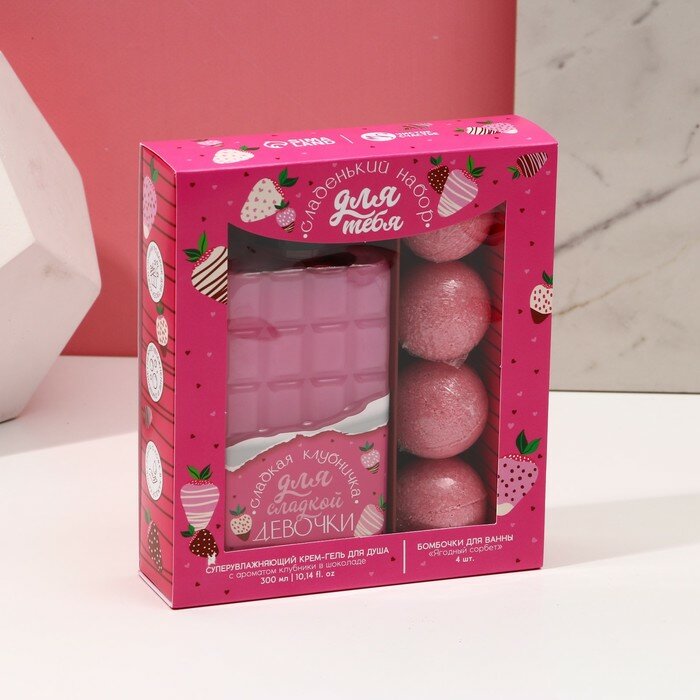 Подарочный набор женский Для тебя, гель для душа во флаконе шоколад и бомбочки для ванны, 4 шт информация: