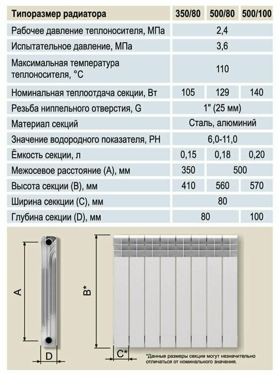 Радиатор биметаллический STI 500/80 8 сек. информация: