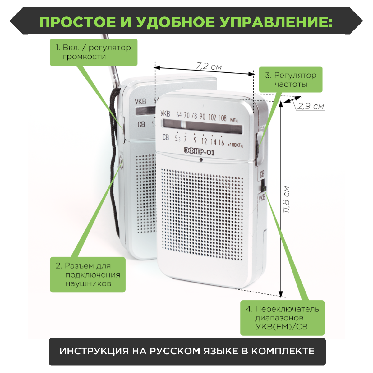 Радиоприемник "Эфир-01", УКВ 64-108 МГц, бат. 2xAA (не в комплекте)