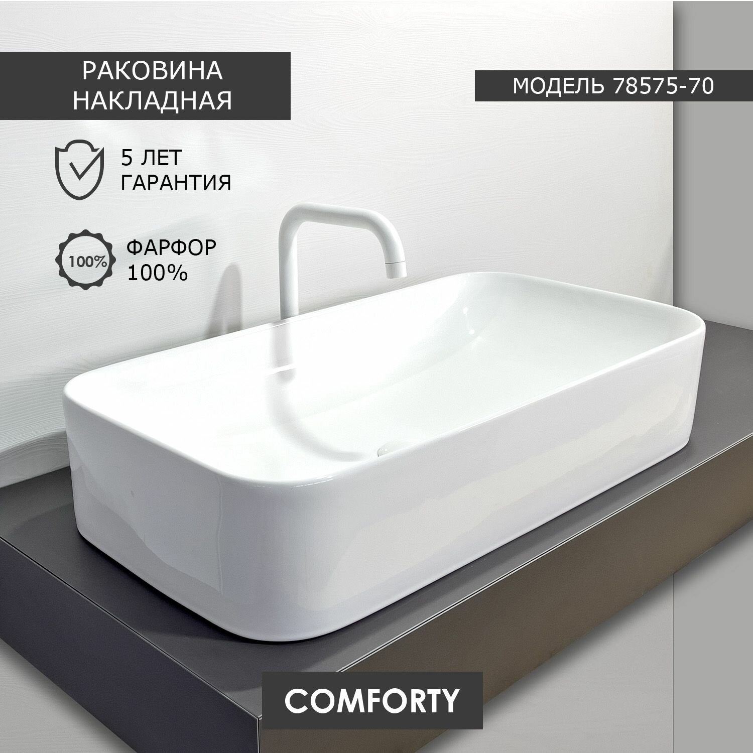 Накладная прямоугольная раковина 70 см Comforty 78575-70 белая для установки на столешницу информация: