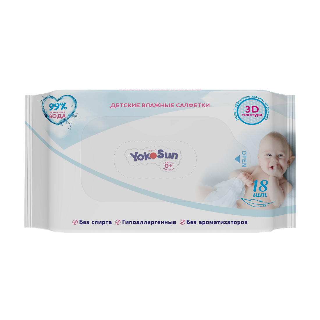 Детские влажные салфетки YOKOSUN , 18 шт.