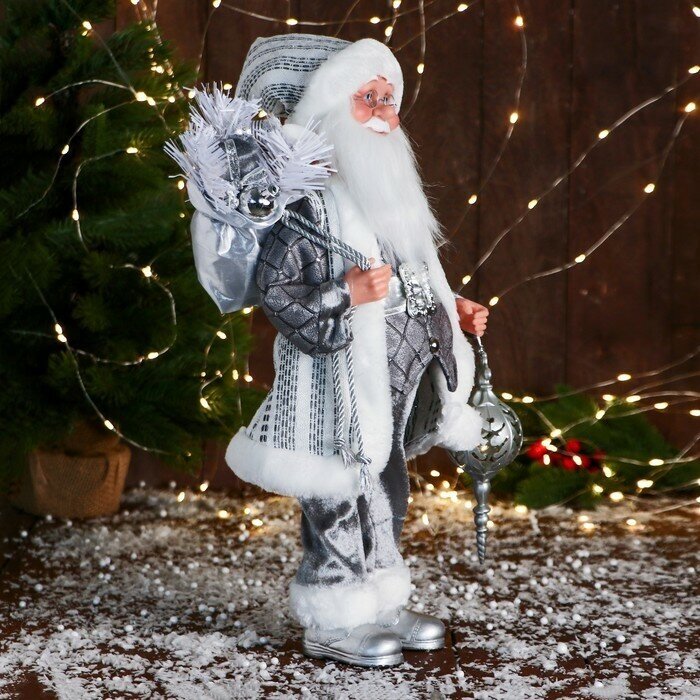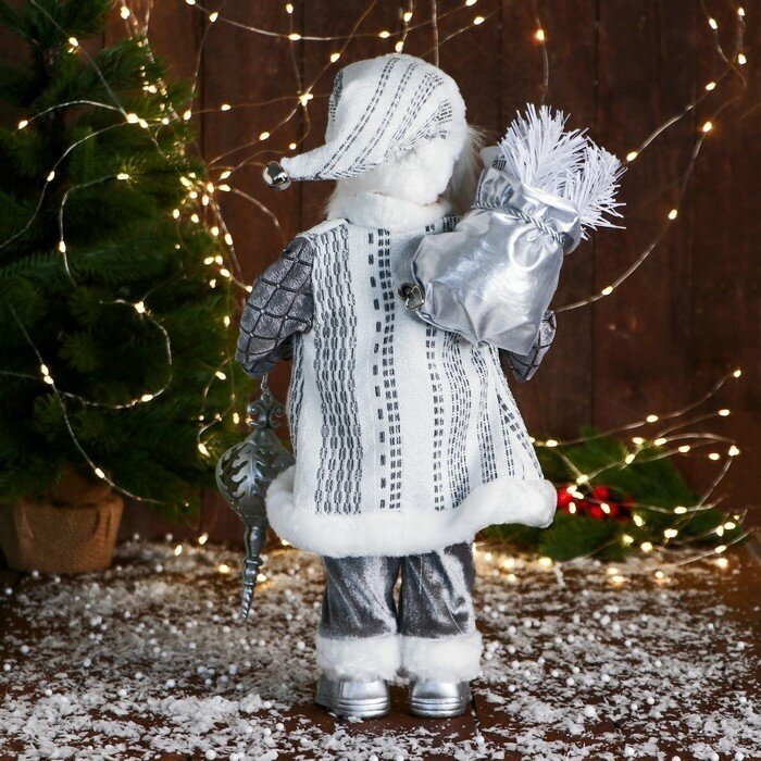 Дед Мороз "Клетчатом жилете " музыка шевелит головой, 43 см, серый информация: