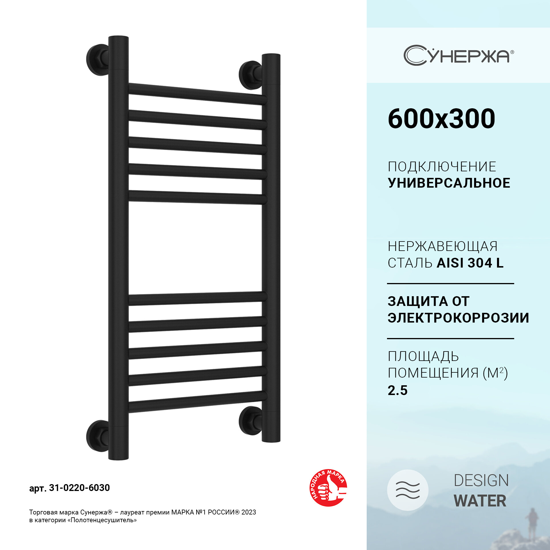 Полотенцесушитель Сунержа Богема+ прямая 600х300 31-0220-6030 Матовый чёрный информация: