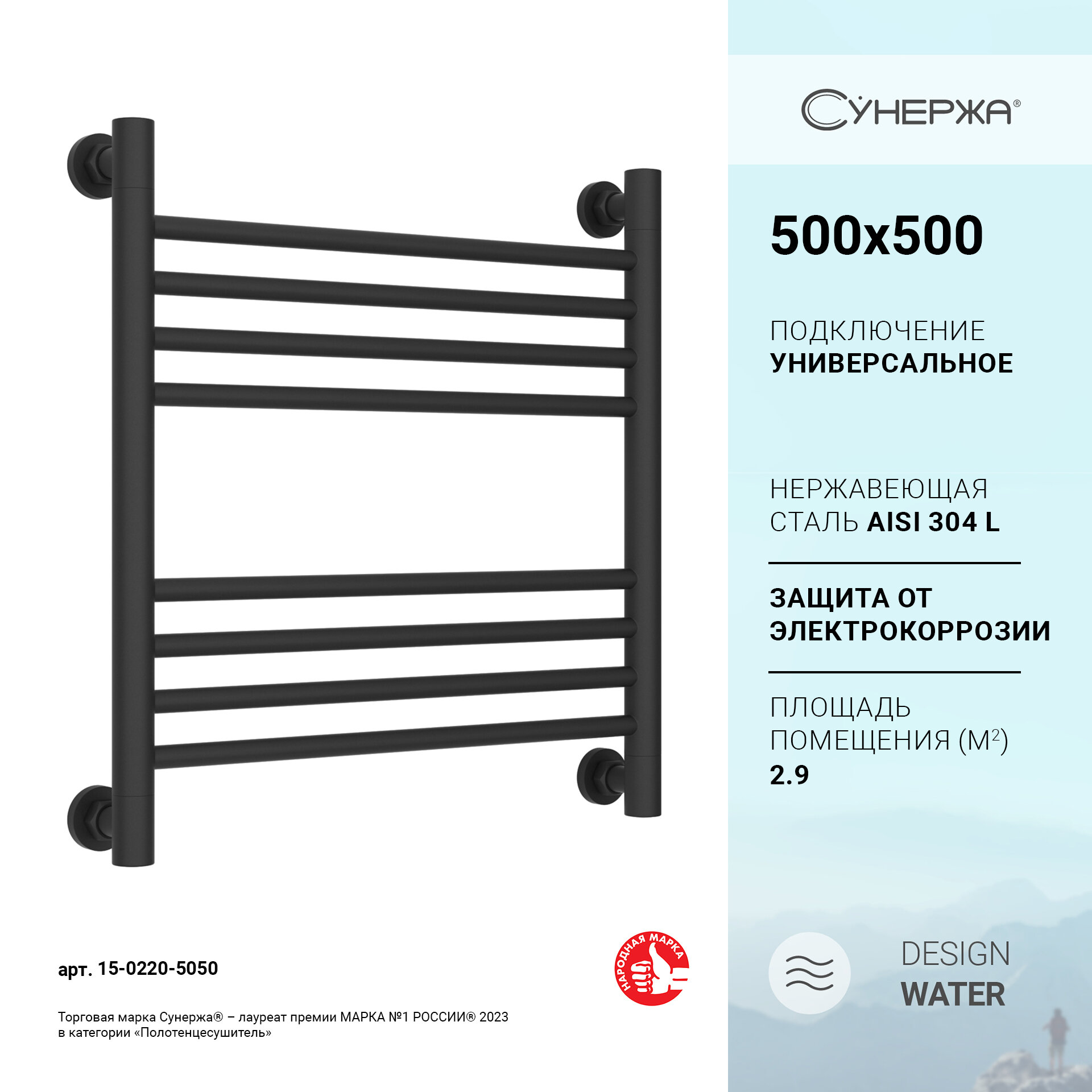 Водяной полотенцесушитель Сунержа Богема+ (прямая) 500x500 матовый черный арт. 31-0220-5050