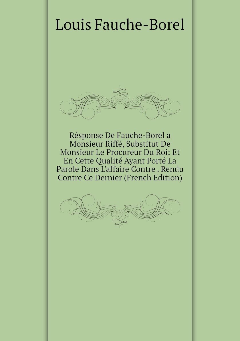 10 цен на Résponse De Fauche-Borel a Monsieur Riffé, Substitut De Monsieur Le Procureur Du Roi: Et En Cette Qualité Ayant Porté La Parole Dans L'affaire Contre…