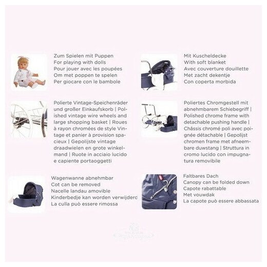 Gotz Коляска четырехколесная, синяя в винтажном стиле 3402877 информация: