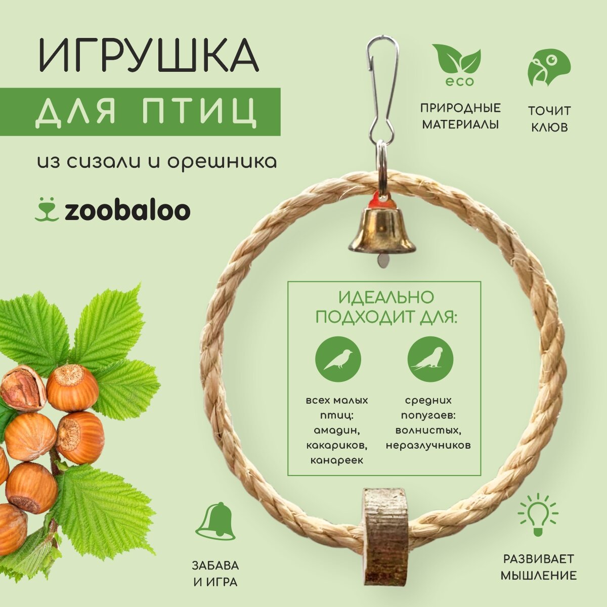 Игрушка для птиц Кольцо из сизали 15х12см, Zoobaloo информация: