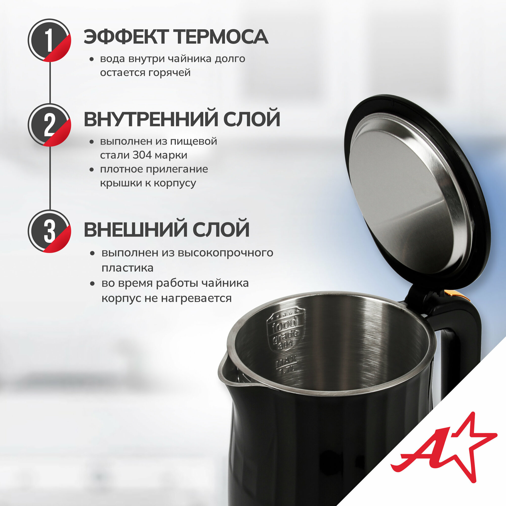 Электрический двухстенный чайник ATH-2536 информация: