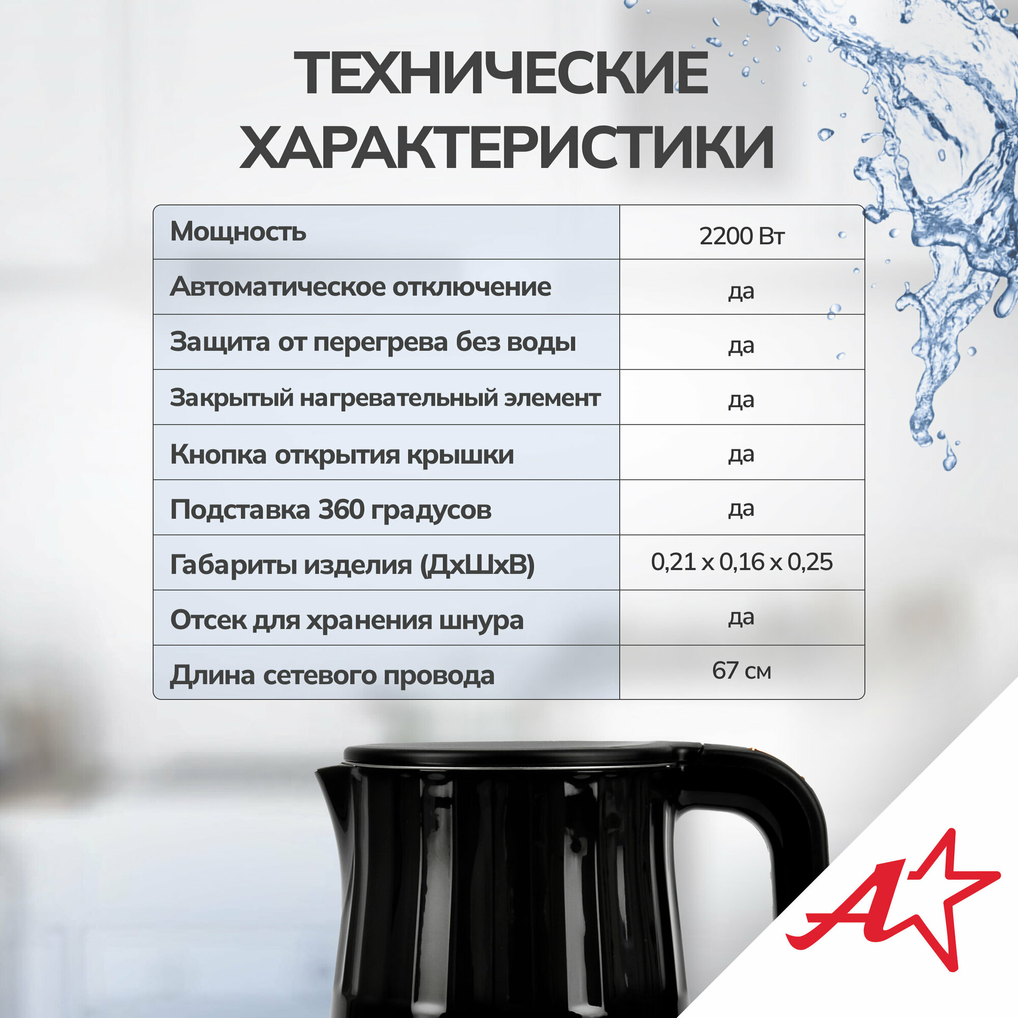 atlanta ath-2449 (black) чайник электрический 2 600 ₽