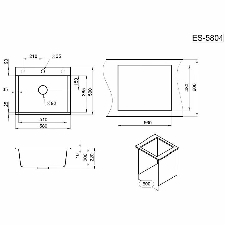 Кухонная мойка Granula ES-5804, турмалин информация: