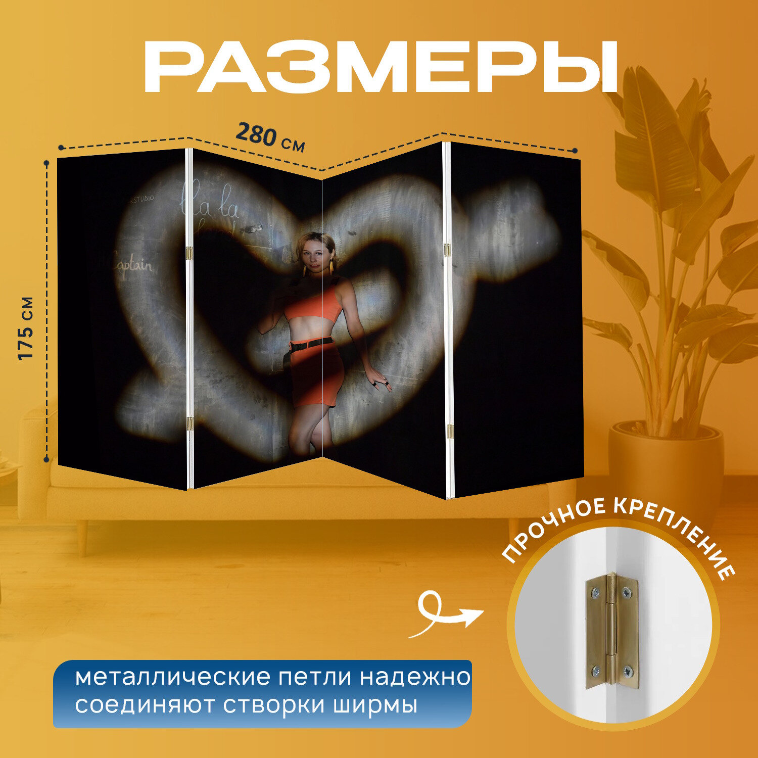 Ширма "Сердце, свет, проектор" перегородка для зонирования комнаты с принтом 280x175 см. на холсте информация: