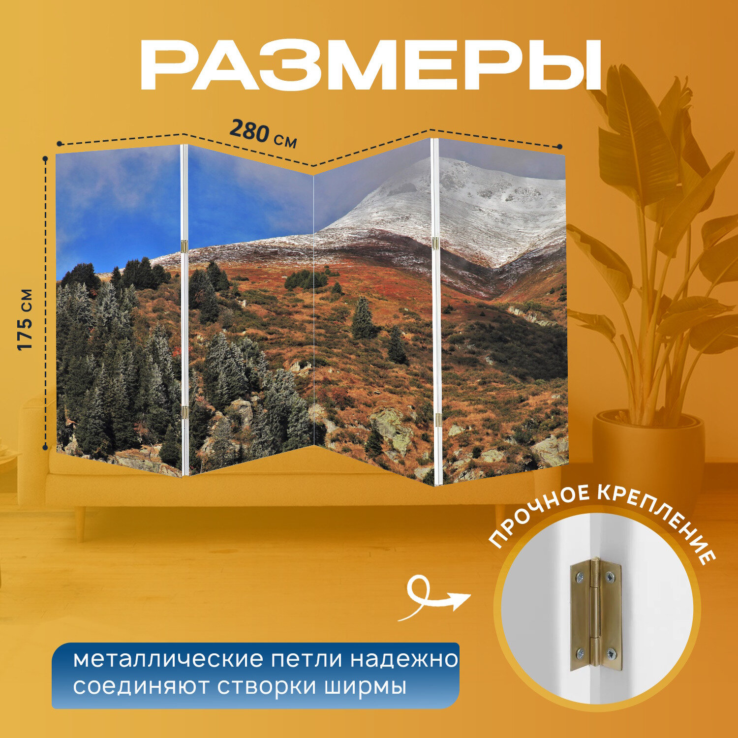 10 цен на Ширма "Альпы, снежный, вверх" перегородка для зонирования комнаты с принтом 280x175 см. на холсте