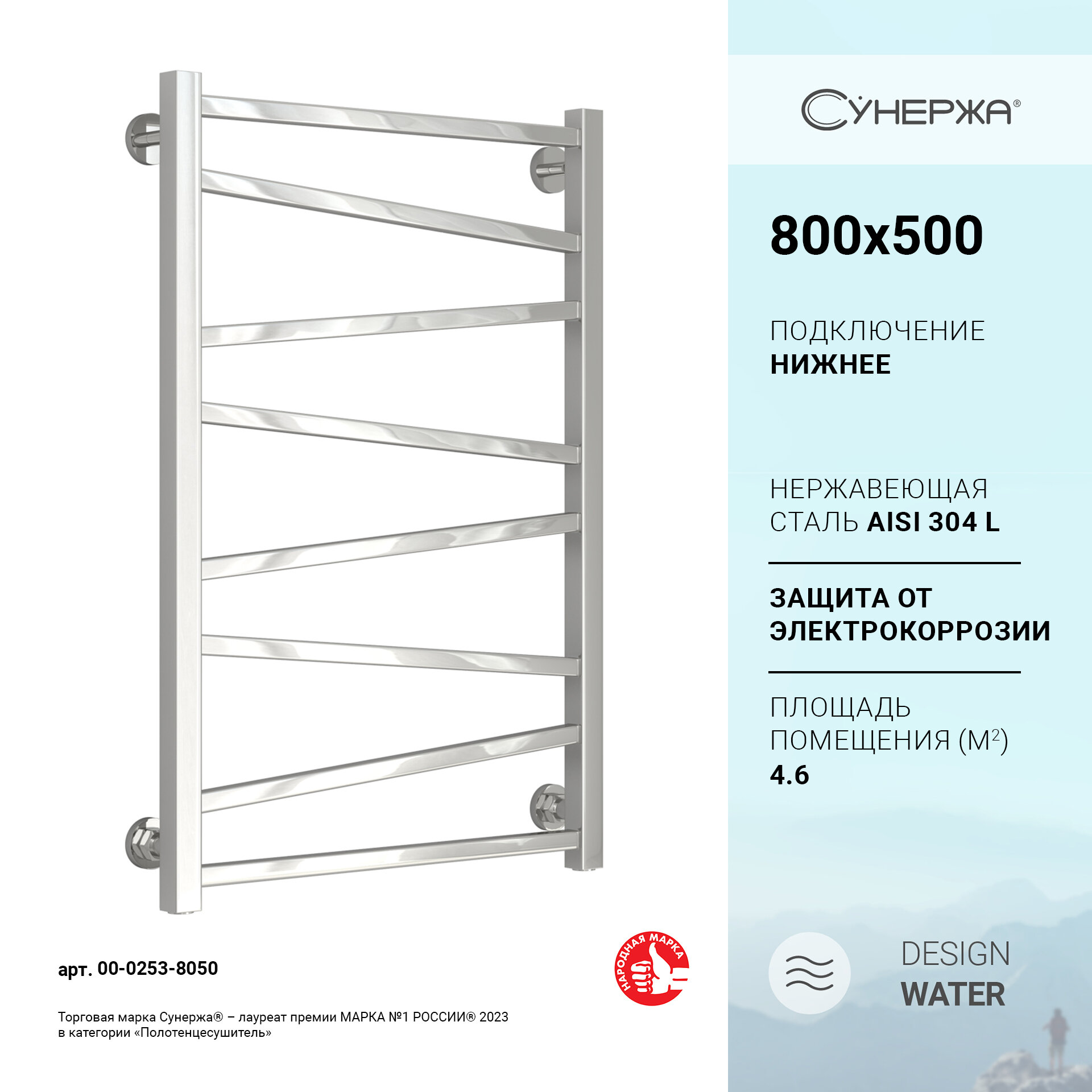 Отзывы на СУНЕРЖА Сирокко Полотенцесушитель 800х500 (8 ступ.) нерж. сталь, нижнее подкл. 3/4" 00-0253-8050