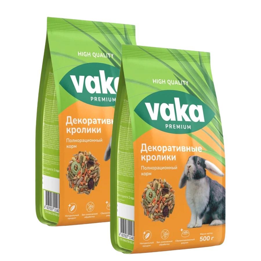 Вака Корм Сухой для декоративных кроликов High Quality, 500 г, 2 шт информация: