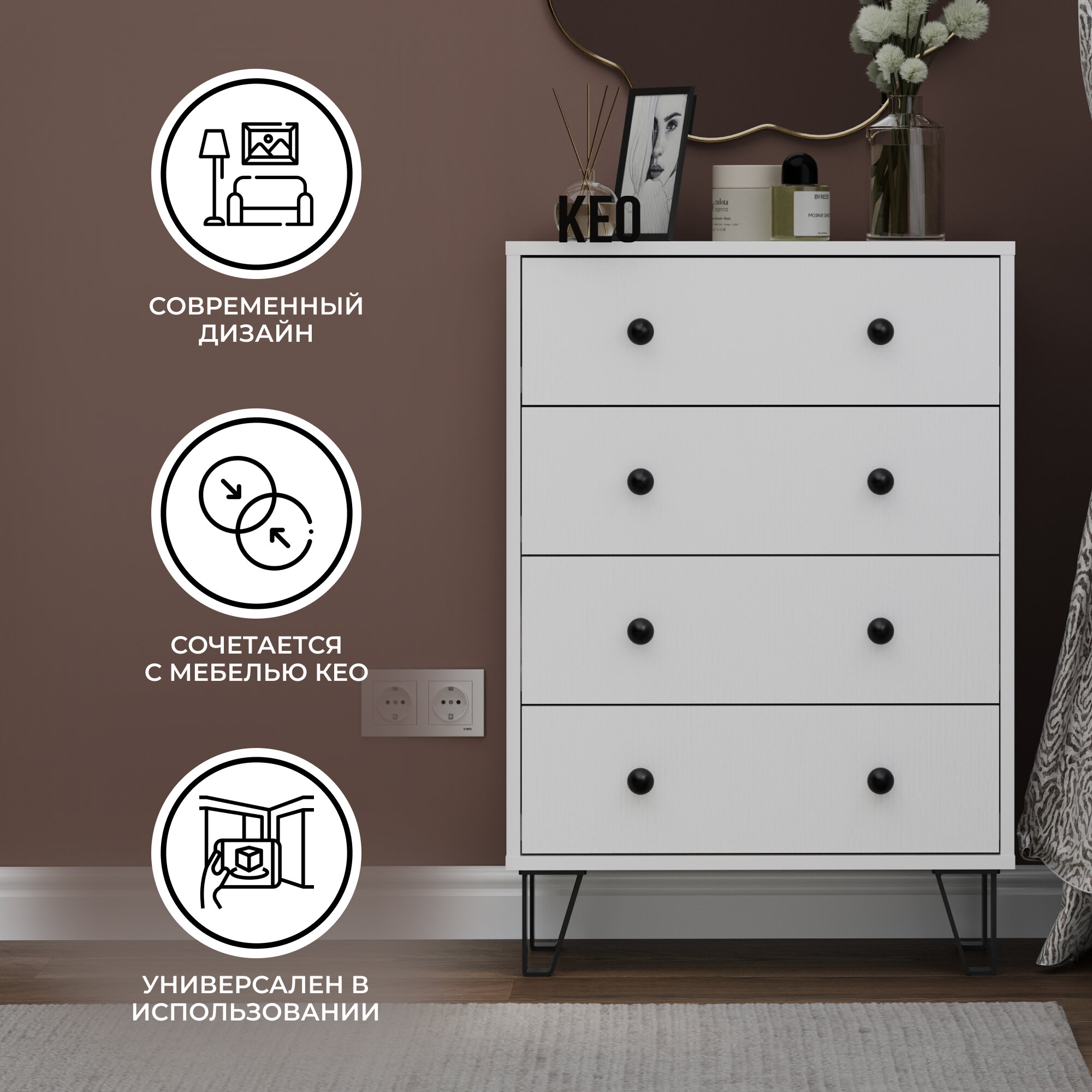 Комод Кео КМД-247 для вещей с 4 ящиками, белый, 87х60х35 см 9 320 ₽