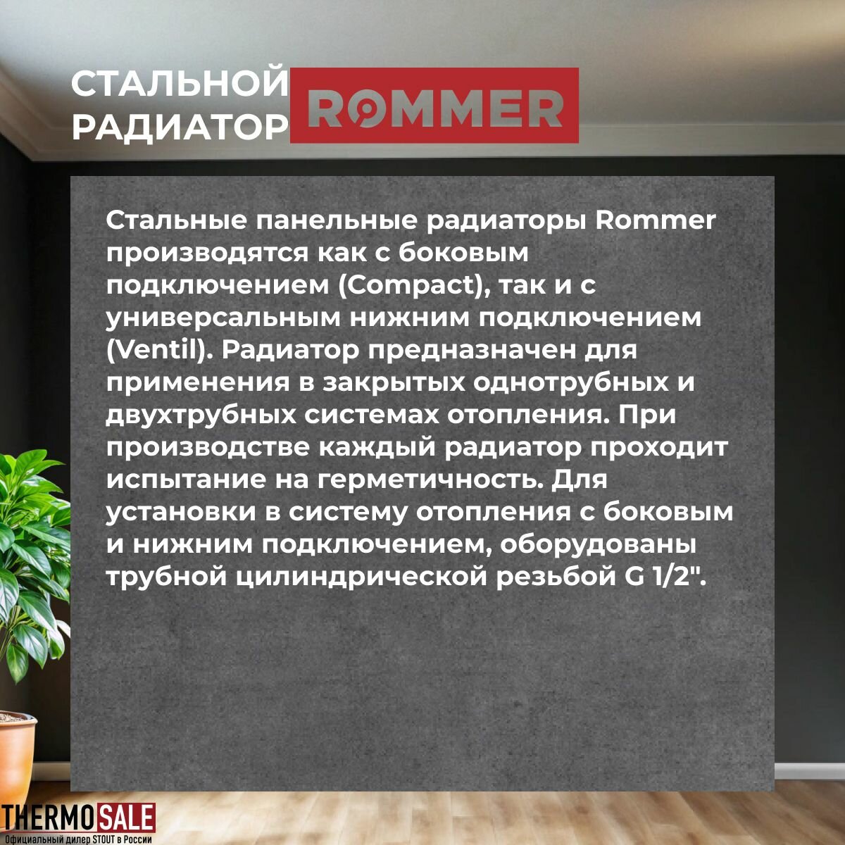 ROMMER 22/300/400 радиатор стальной панельный боковое подключение Compact информация: