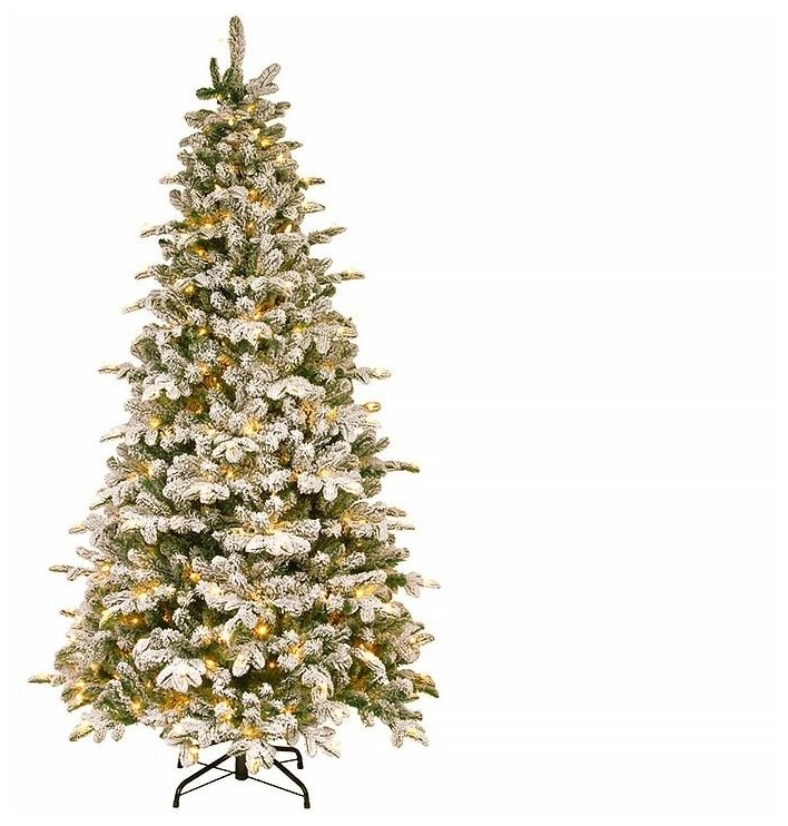 Искусственная ель эверест (литая хвоя РЕ+PVС, напыление искусственного снега - флок), 400 теплых белых LED ламп, 213 см, National Tree Company