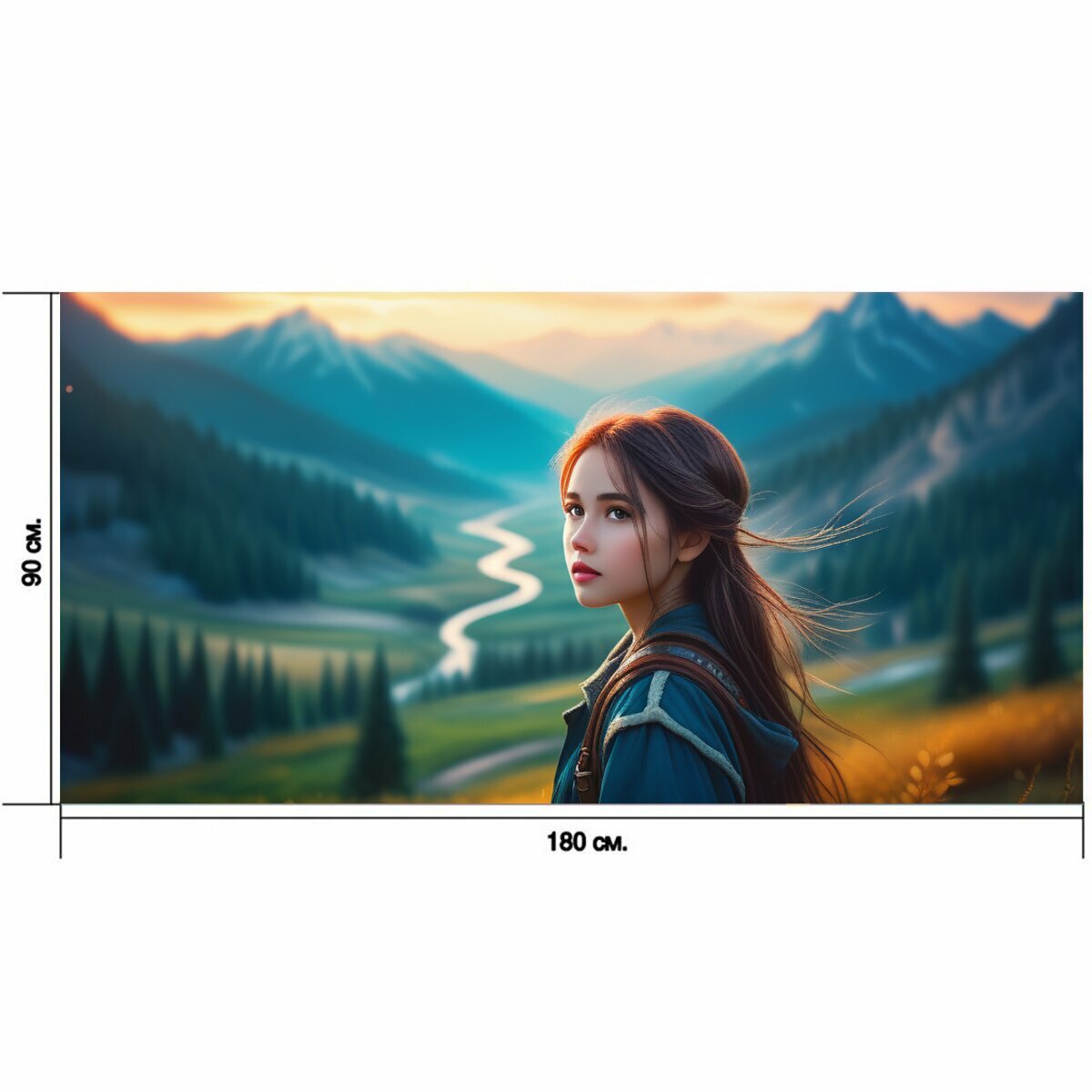 10 цен на Большой постер "Пейзаж с девушкой маслом красивый, " 180 x 90 см. для интерьера на стену