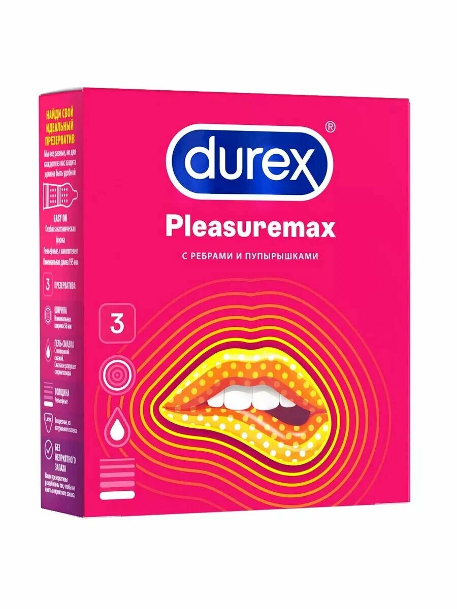 Durex Pleasuremax Презервативы с ребрами и пупырышками для стимуляции обоих партнеров, 3 шт