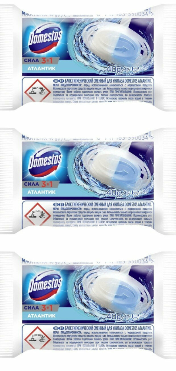 Набор из 3 штук Блок гигиенический сменный для унитаза Domestos Атлантик 40гр информация: