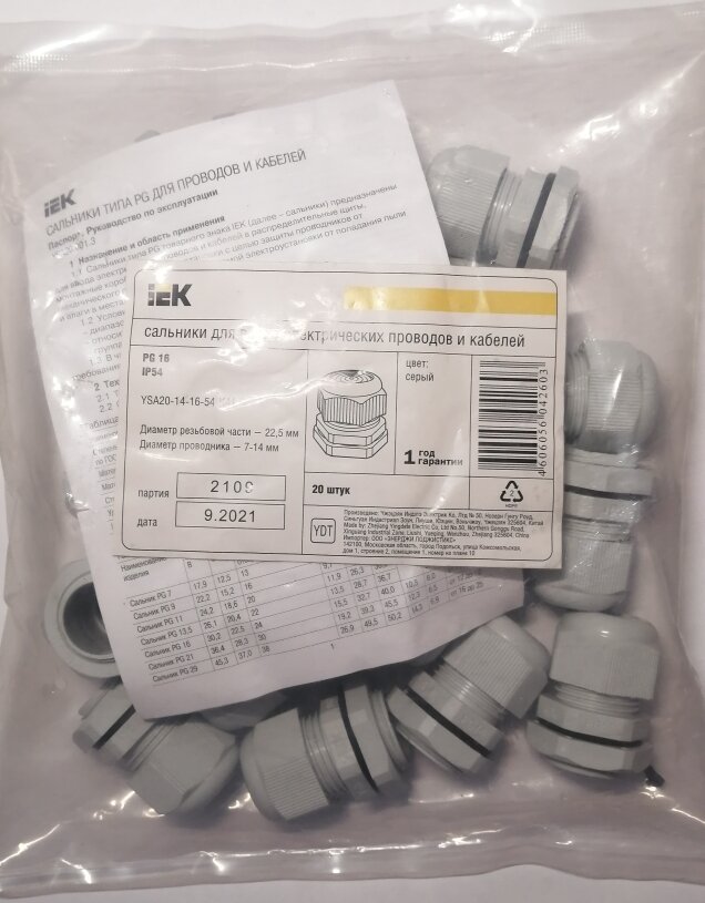 Сальник PG16 диаметр проводника 7-14мм IP54 (20 штук) информация: