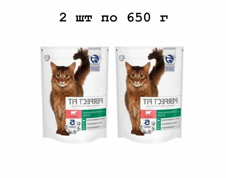 Отзывы на 2 уп Perfect Fit Корм сухой для стерилизованных кошек с говядиной, 650 г