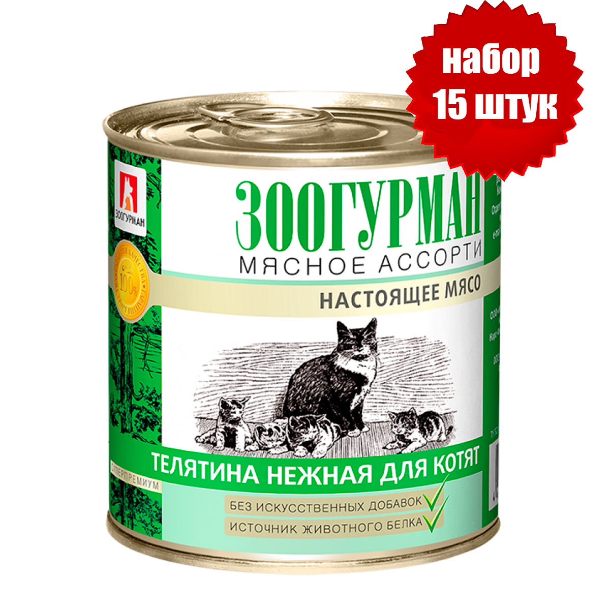 Зоогурман для котят Мясное ассорти Телятина нежная, консервы 250г (15 банок)