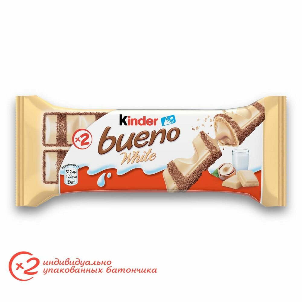 Хрустящие вафли Kinder Bueno White в белом шоколаде 39 г 2 шт информация: