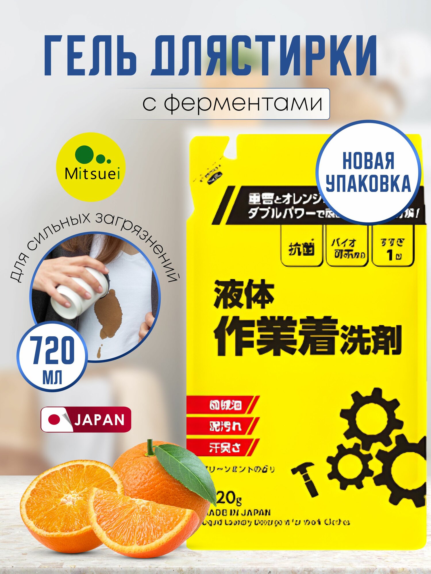 Отзывы на Mitsuei Super Wash Мощный Гель для стирки с отбеливателем и ферментами для рабочей одежды и сильнозагрязненной одежды 720 гр запасной блок