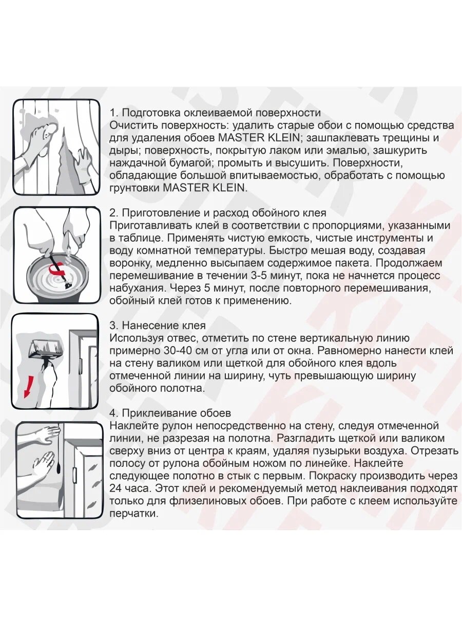 Клей обойный "Master Klein" для всех типов обоев 150гр.(мягкая пачка) информация: