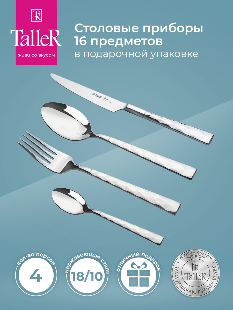 Набор столовых приборов TalleR TR-21608 Оливия, 16 предметов в подарочной упаковке, нержавеющая сталь информация: