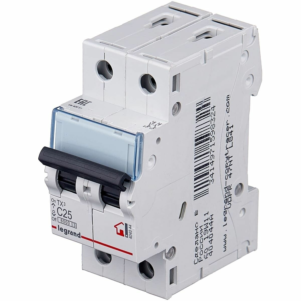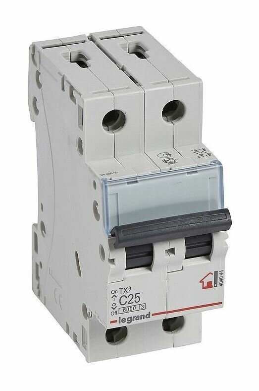 Legrand 404044 Автоматический выключатель TX3 6000 - 6 кА - тип характеристики C - 2П - 230 400 В - 25 А - 2 модуля