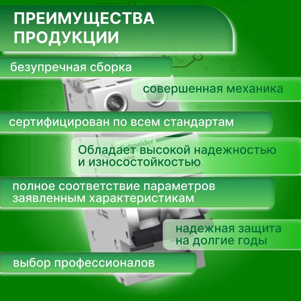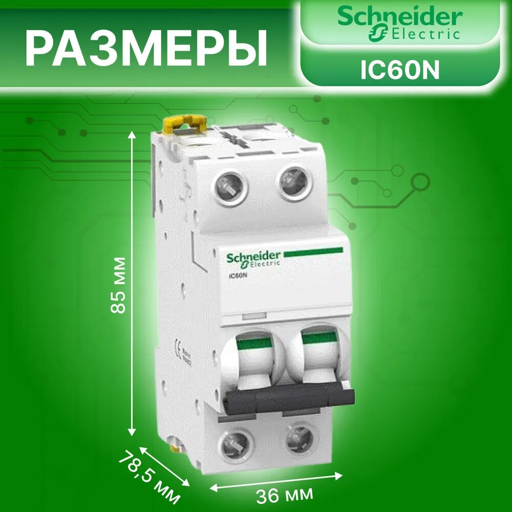 Автоматический выключатель ETECOM GROUP Acti9 2P 6А (D) 6кА (A9F75206) двухполюсной, модульный Schneider Electric для электрического счетчика