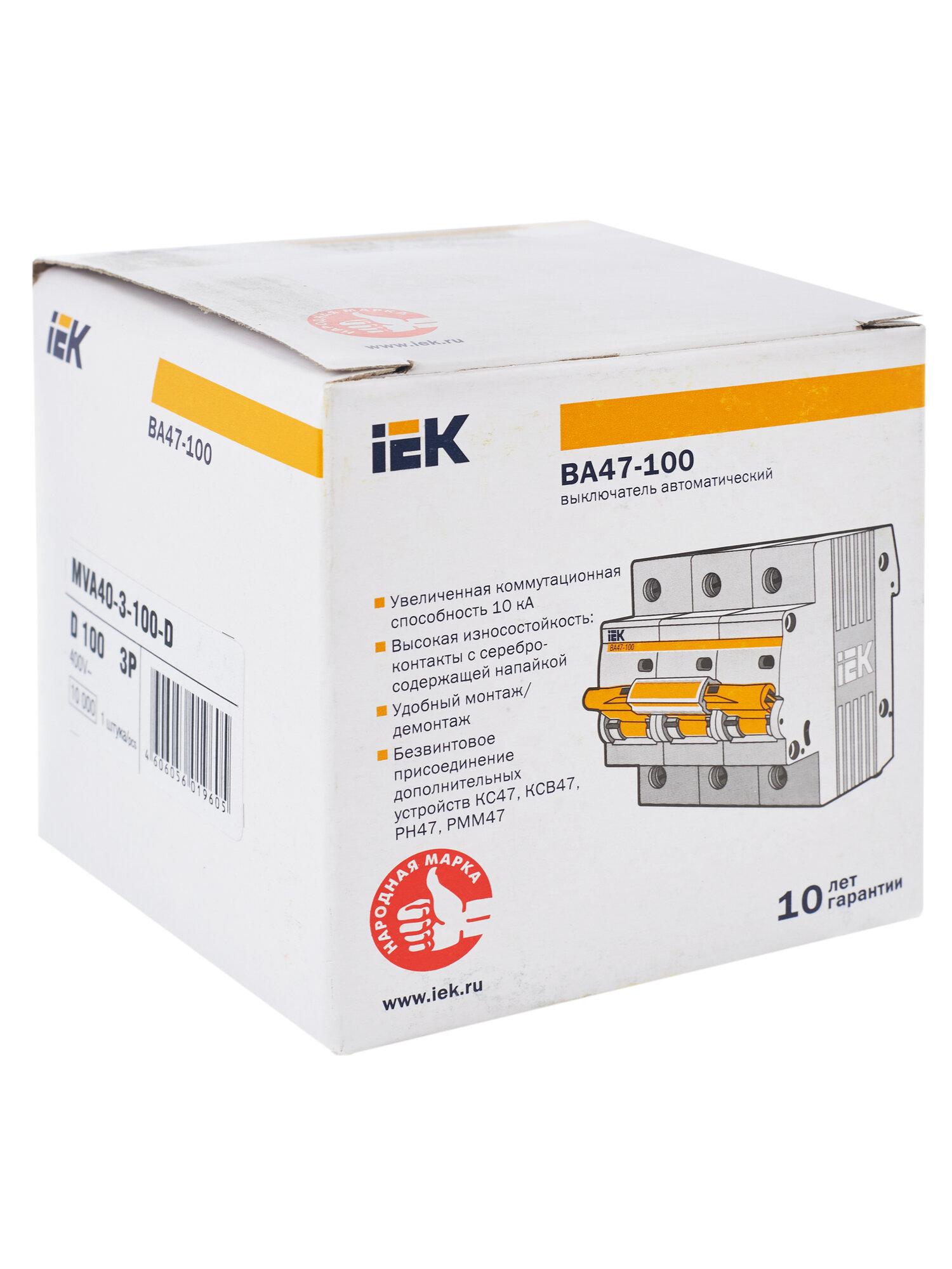 Выключатель автоматический модульный 3п D 100А 10кА ВА47-100 IEK MVA40-3-100-D (1 шт.)