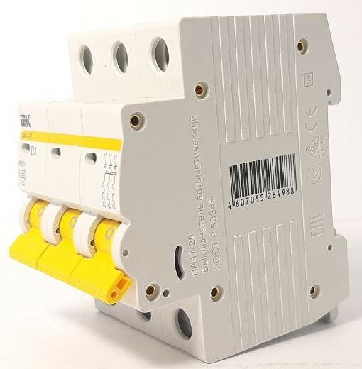 Выключатель автоматический модульный 3п D 4А 4.5кА ВА47-29, IEK MVA20-3-004-D (1 шт.)