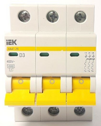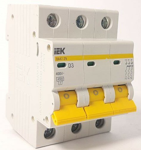 Выключатель автоматический модульный ВА47-29 3А 3П трехполюсный D 4,5кА MVA20-3-003-D IEK