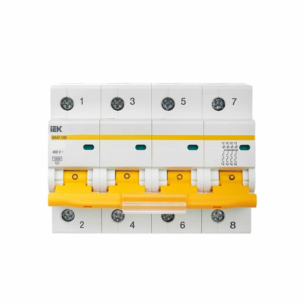 Выключатель автоматический четырехполюсный ВА47-100 80А C 10кА | код. MVA40-4-080-C | IEK ( 1шт. ) 5 715 ₽