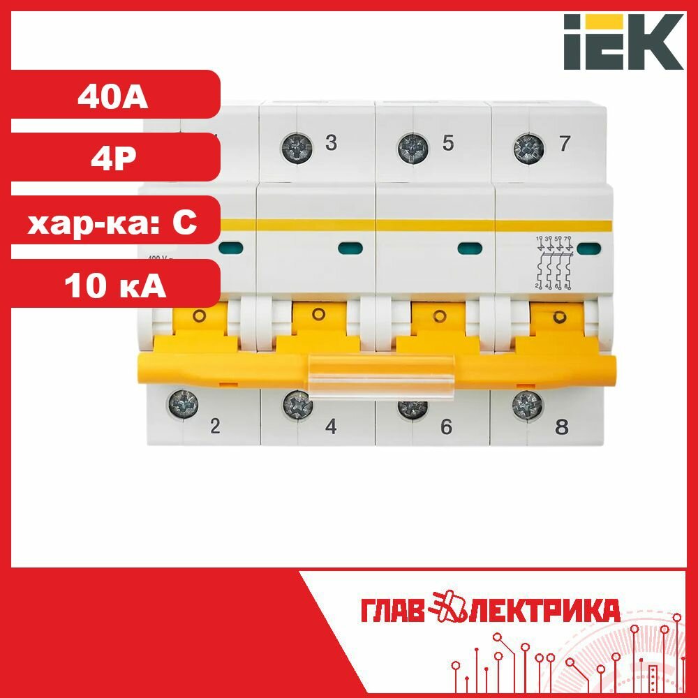 Выключатель автоматический ВА47-100 4P C 40А 10кА IEK информация: